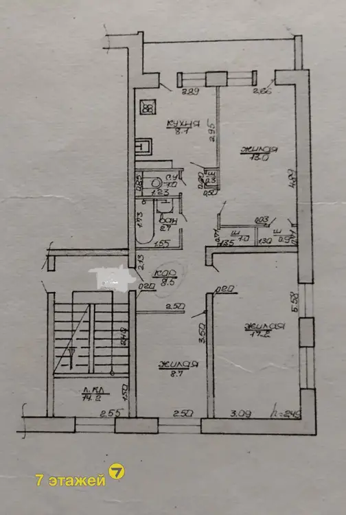 Все комнаты раздельные: 13,0м2, 17,0м2 и 8,9м2.