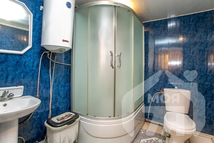 - Отопление — одноконтурный газовый котёл. Горячая вода организована практично: два электроводонагревателя — отдельно для кухни и ванной. Санузел оборудован, с душевой зоной. Также установлены стеклопакеты, поэтому в доме тише и теплее в межсезонье.