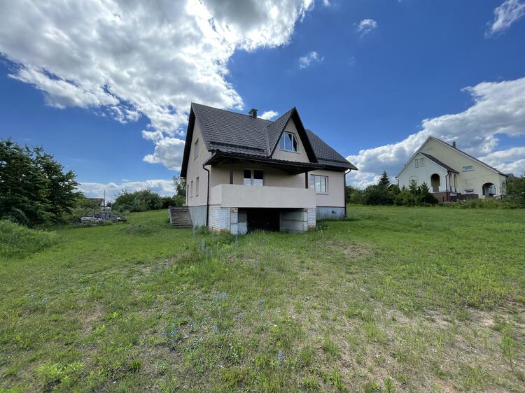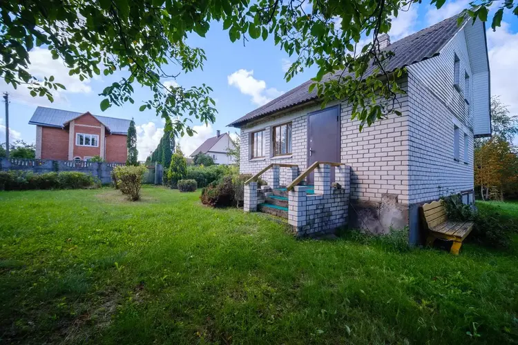 Уютный загородный дом площадью 107,5 м2 с мансардой, построенный из бревна и облицованный кирпичом, расположен на ухоженном участке в 15 соток. Участок правильной формы, огражден бетонным забором и граничит с живописными полями и лесом.