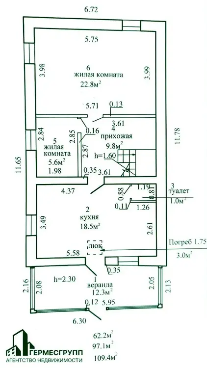 Год постройки 2017. Общая площадь 97,1 м2, жилая 62,2 м2, кухня 18,5 м2.