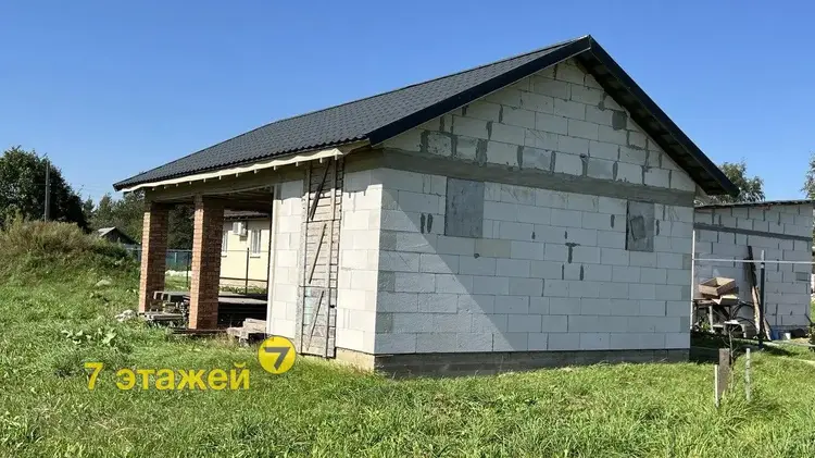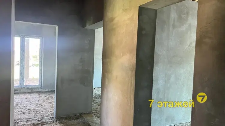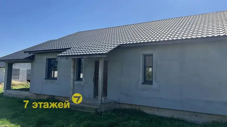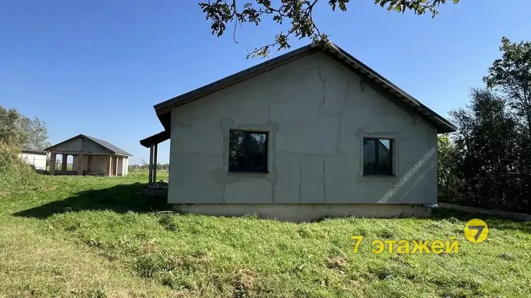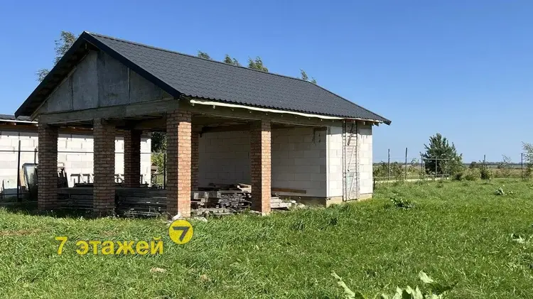 Дом строили для себя из качественных материалов. Готовность 76%. 2024 год постройки. Один уровень. Есть возможность благоустройства второго этажа. Фундамент ленточный м250 (толщина 300 мм) на гравии. Стены блочные (300 мм), утеплены снаружи (минвата Технониколь 100 мм) и оштукатурены. Внутри дома оштукатурены. Кровля металлочерепица Grand Line (на гарантии). Установлены энергосберегающие ламинированные стеклопакеты ПВХ с фурнитурой Roto. Центральный водопровод – своя врезка и колодец. Вода введена в дом и баню. Электричество подведено к участку 220/380 В (5 кВт). Оптоволокно – Белтелеком подведено к дому. Общая площадь дома 150 м.кв. Терраса с выходом из кухни 40 м.кв. с возможностью остекления. В доме 4 жилых комнаты. Высота потолков 3 метра. На участке баня 61 м.кв. и навес для двух авто с хозблоками. Высажены плодово-ягодные деревья, туи. Имеется вся утвержденная и согласованная документация по строениям, проектам и коммуникациям, установлены счетчики