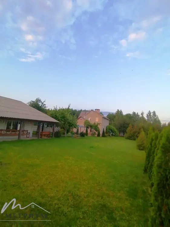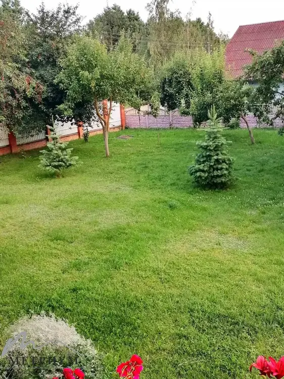 Участок ровной формы, огорожен по периметру забором. Кроме этого, на участке есть баня, зона барбекю, беседка, качели, бассейн, навес, стоянка на три автомобиля. А также на участке много плодово-ягодных деревьев и кустарников ((черешни, груши, яблони, виноград), небольшой огород, парник. На территории высажено много туй, цветов.