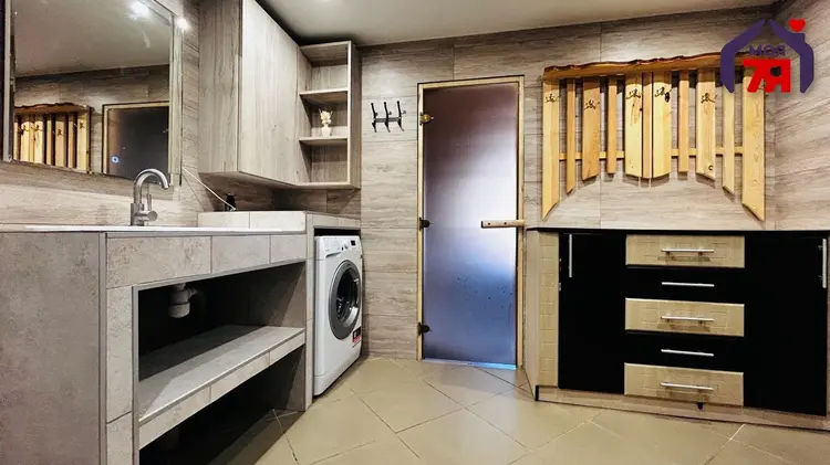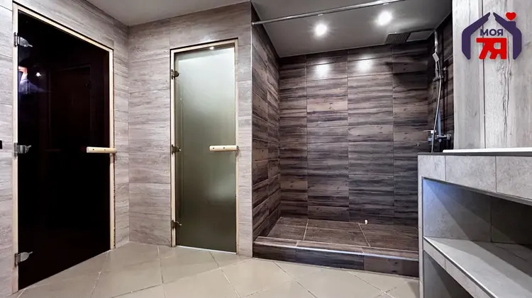 - Баня 51 кв.м. из блоков с крышей из металлочерепицы. На первом этаже расположены кухня, санузел, душевая и парилка. На втором этаже предусмотрена жилая комната.