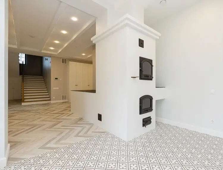 - Первый основной этаж с: Кухней и Русской Печью, Просторным Холлом и Камином, С/у, Кладовой комнатой, Гардеробной и Котельной;