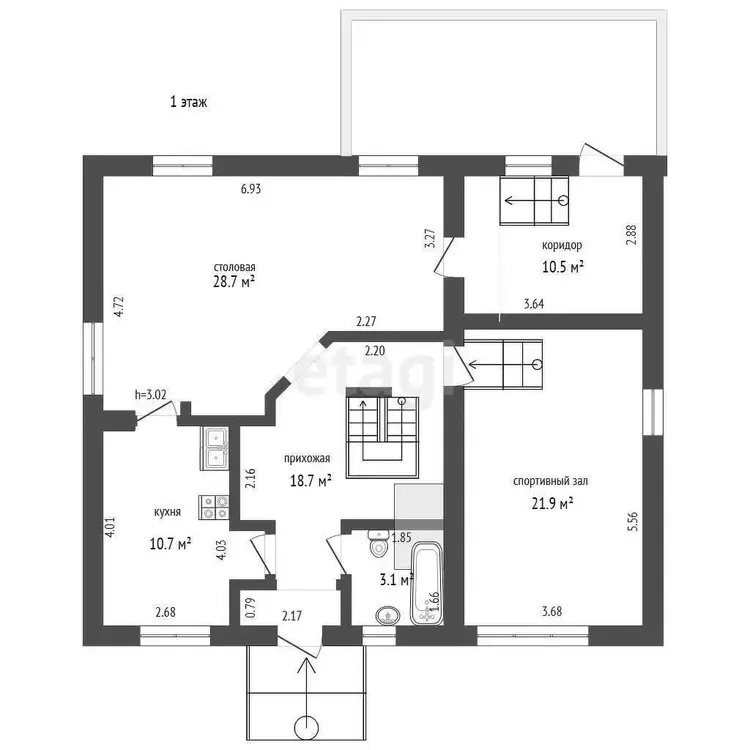 Уже укомплектован беговой дорожкой и тренажёрами. Пространство легко трансформируется — можно сделать кабинет, гостевую спальню или детскую игровую. - Санузел с душевой кабиной — для удобства на первом этаже.