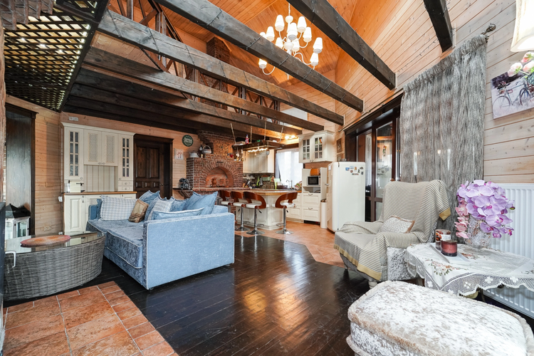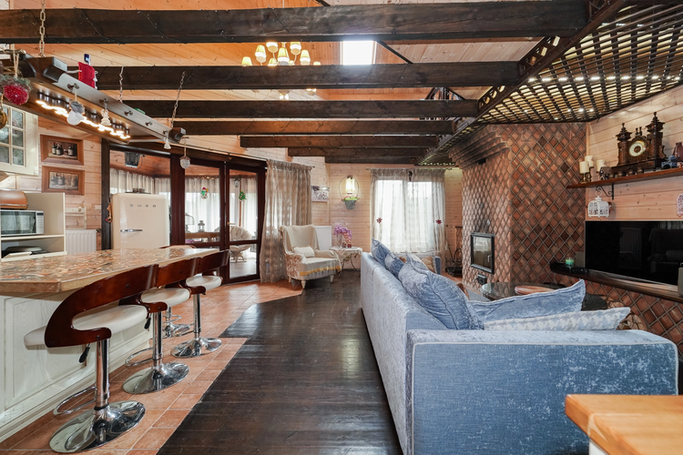 Дом двухэтажный, блочный, утеплен лиственницей. Внутренняя отделка выполнена очень профессионально, качественно - из дерева, с использованием дорогих пород.