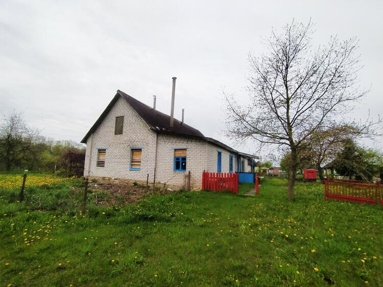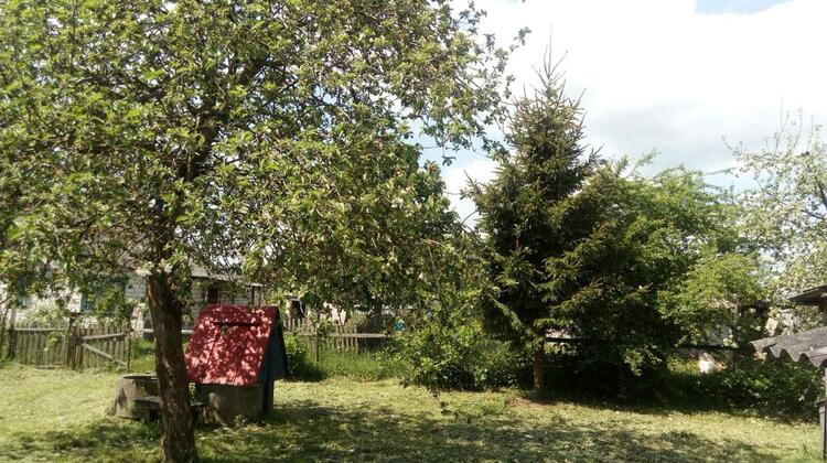 Коммуникации включают электрический столб рядом с участком, печку, колодец на участке, а газ находится в 500 м по улице. Также есть возможность установки электрического котла для отопления, так как подстанция это позволяет. Есть баня. Участок площадью 25 соток огражден и на нем растут плодовые деревья. Сосед находится с одной стороны.