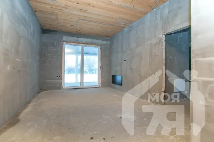 -Площадь дома составляет 67 кв.м. (общая площадь здания 82,1кв.м.), и это пространство уже подготовлено под финишную отделку: залита чистовая стяжка, стены оштукатурены.