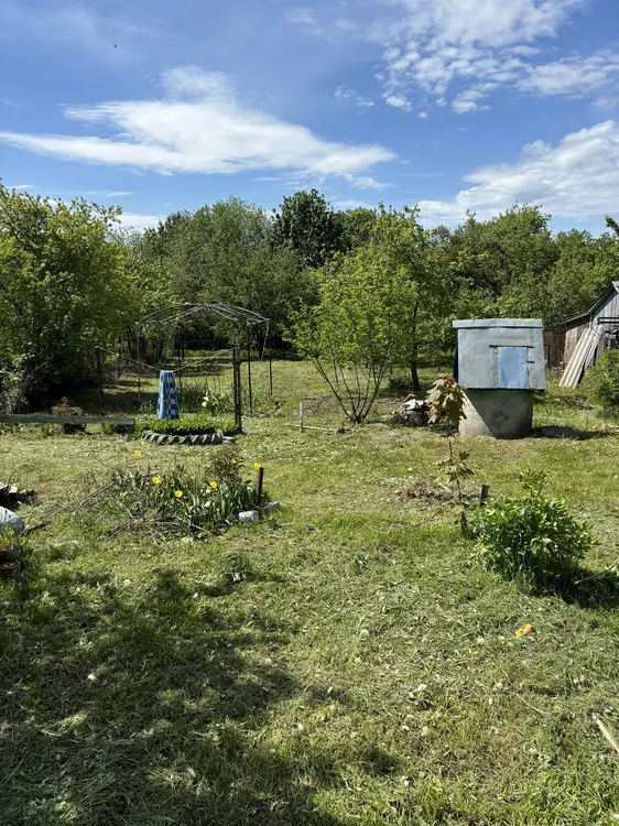 Земельный участок 12.5 в ПНВ соток, ровный, обработанный, частично огорожен забором. На участке стоят сараи, погреб, туалет. Посажены плодово-ягодные насаждения. Подъездные пути: асфальт + гравийная дорога.