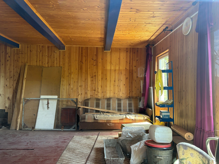 Описание: одноуровневый деревянный дом, 1924 г. п. (реконструкция в августе 2021 г), общая площадь 35.1. м, жилая 26.9 кв. м, одна большая комната 26.9 кв. м, коридор, кладовая, в нормальном состоянии. Входная и межкомнатные двери деревянные, окна из профиля ПВХ, пол — ДСП, линолеум, внутренняя отделка – вагонка. Отопление нет. Крыша шифер.