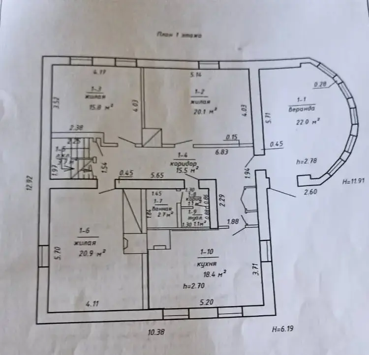 - на 1 этаже h=2,7 м., веранда h=2,78 м.