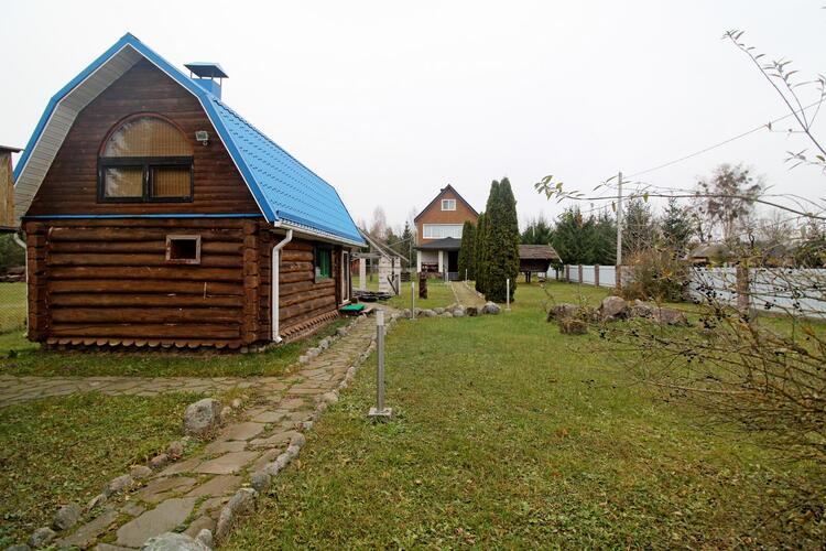 На участке построен двухэтажный дом из кирпича с мансардным этажом и современная бревенчатая баня.