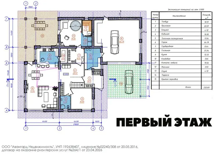 Предусмотрено пространство для размещения автомобиля: есть гараж на 2 авто и площадка перед гаражом.