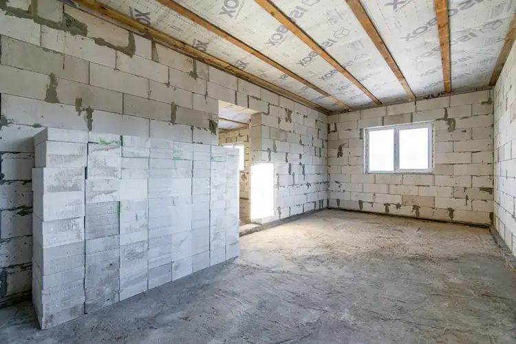 · Каркас крыши выполнен из деревянного бруса, с устройством гидро-паро-изоляции с последующим утеплением минераловатными плитами в соответствии с требованиями строительных норм; По всему периметру выподнен армо-пояс по всем нормам и стандартам + мауэрлат на шпильках и др.