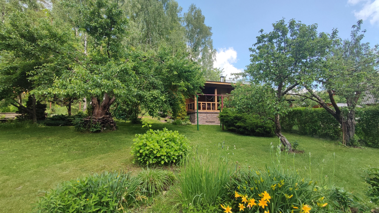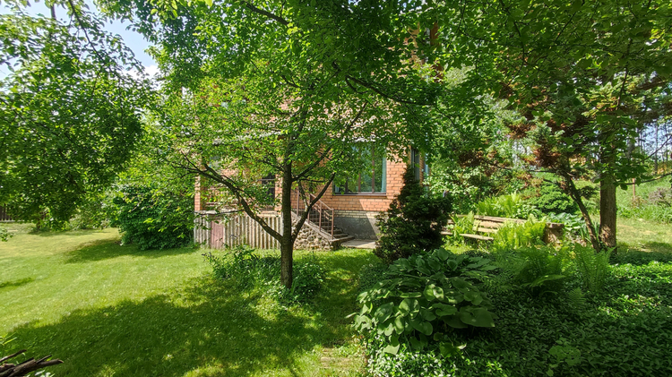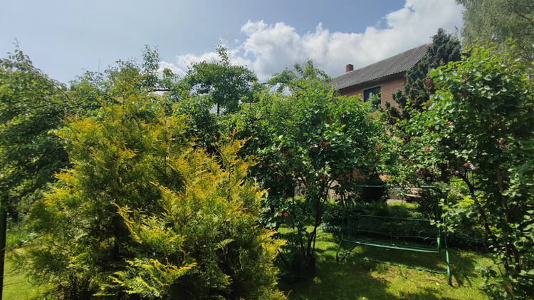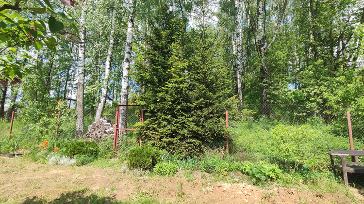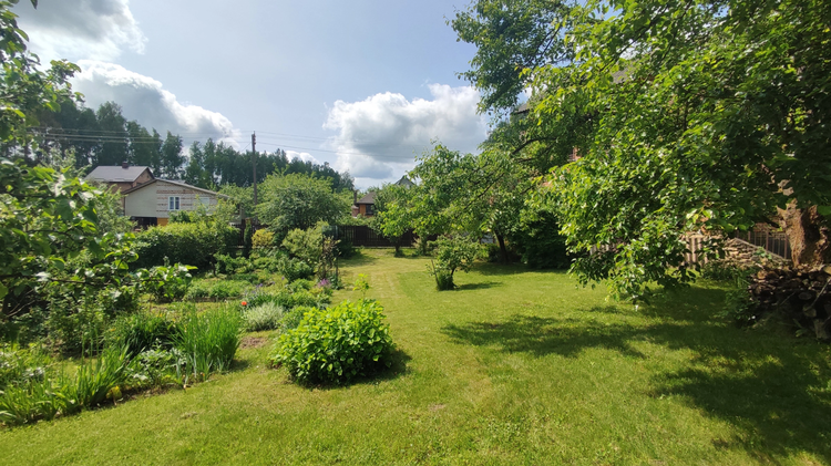 На участке есть плодовые и декоративные деревья и кустарники, что, в свою очередь, создают "живую изгородь" и дополнительное уединение на участке.