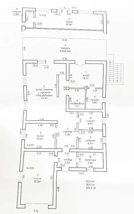 · Площадь: 205 кв.м. по СНБ / 163 кв.м. общая / 93 кв.м. жилая.