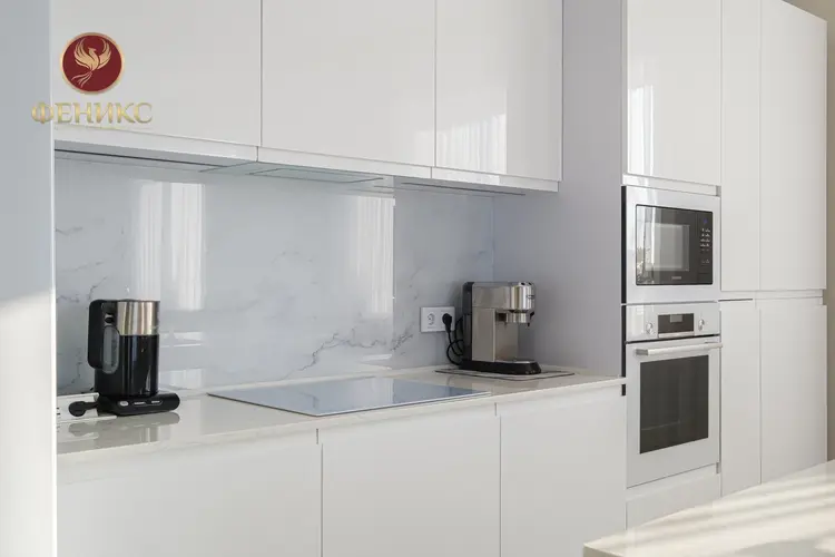 Одноэтажный дом с просторной кухней-гостиной (46.7 кв.м.), оснащенной современной встроенной техникой,