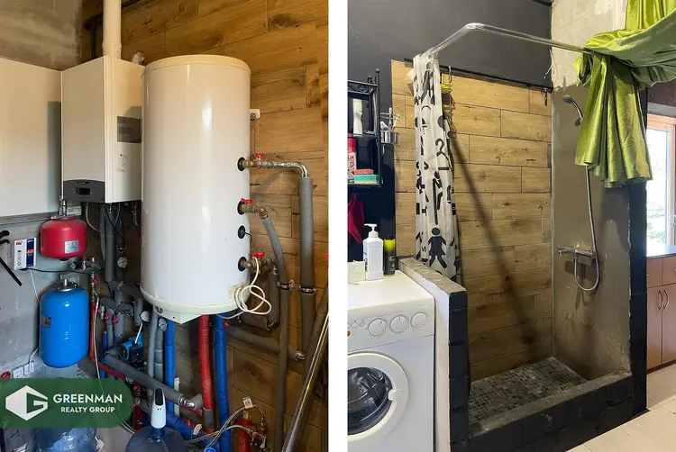 В доме современное отопление на газовом котле, разводка отопительной системы по всему дому - батареи с терморегуляторами, подогрев пола в санузле, санузел (2 шт.) ванной комнате и душевой . Основной дом: Кухня-гостиная 50,7 кв.м, три спальные комнаты 18,4 кв.м. и 17,8 кв.м., жилая 23,9 с видом на лес, санузел 5,4 и 5,6 кв.м., прихожая 7,4 кв.м., окнах ПВХ, просторная терраса 21 кв.м. , с видом на лес и пруд с золотыми рыбками. Очень светлый, полный солнца и любви дом, сделанный с умом на долгие десятилетия!