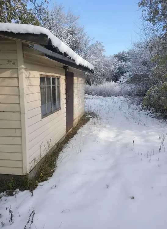 Участок ровный, площадью 24,89 сотки, правильной формы. Крайний, огорожен, соседи только с одной стороны. Асфальтированная дорога до участка. Есть хоз. постройки, гараж. В 2022 году в деревне была проведена новая линия электропередач и установлено новое уличное освещение. В деревне есть магазин. Дополнительно осуществляется доставка продуктов автолавкой. Регулярно курсирует маршрутное такси.