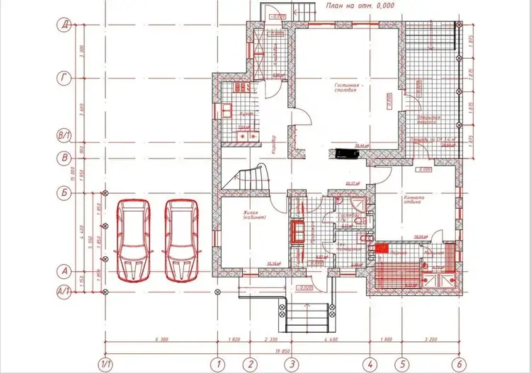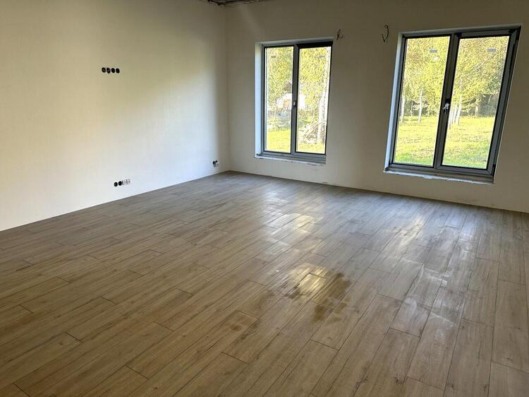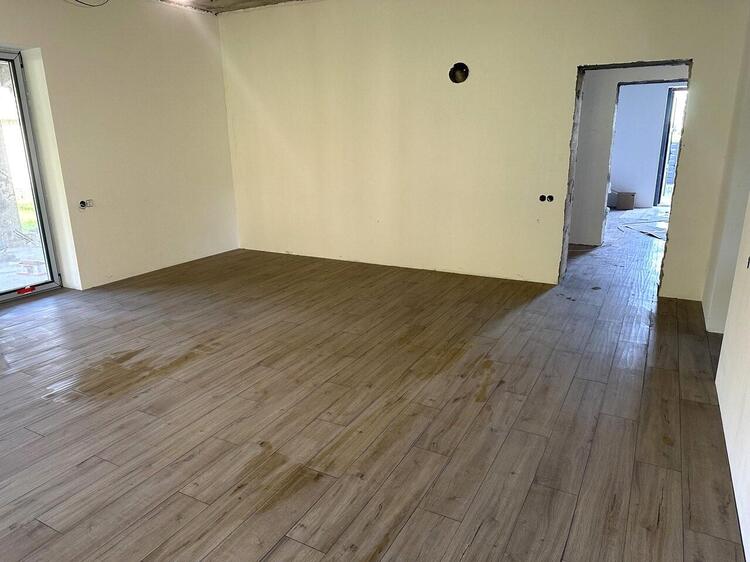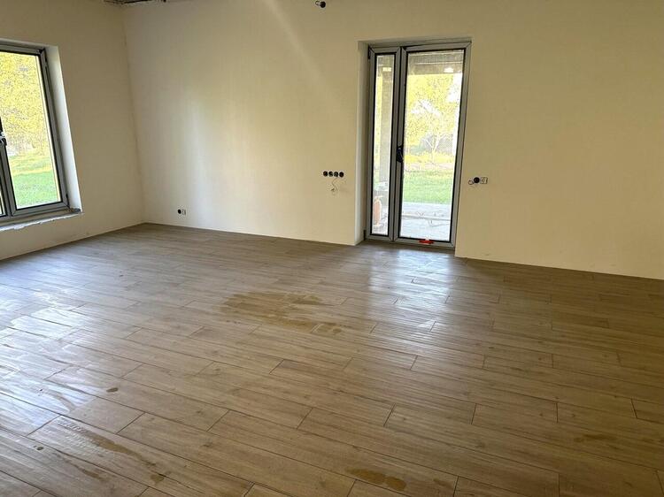 -- 1-й этаж – кухня, кладовая, 3 комнаты (гостиная, спальня, комната отдыха – на полах плитка, стены – под финишную отделку), 2 санузла, баня (стены, пол – плитка уложена).