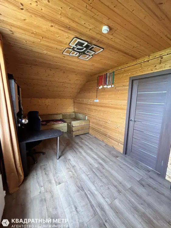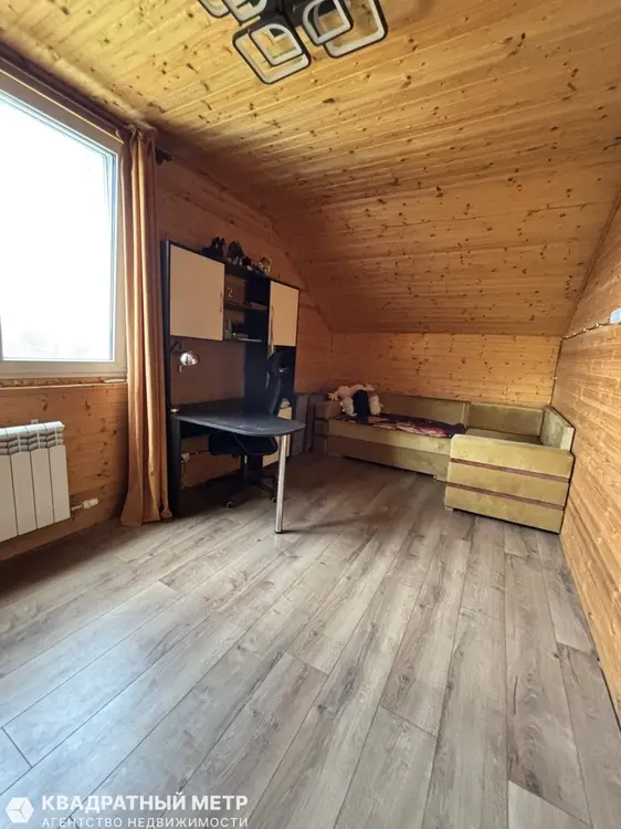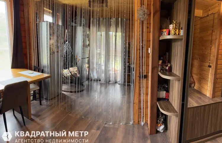 Дом из бруса площадью 138.9 м2, на 1 этаже - большая гостинная с кухонным оборудованием и выходом на терассу, жилая комната, топочная, санузел. Высота потолков - 2.62см на первом этаже и 2.42см на втором. Полы - ламинат и плитка , с подогревом по периметру всего этажа. На втором этаже 3 изолированные комнтаты, санузел. гардеробая. Установлены радиаторы. Качественные двухкамерные окна ПВХ. Крыша - мет.черепица Канализация переливная 3 колодца, газ разведен, оптоволокно.