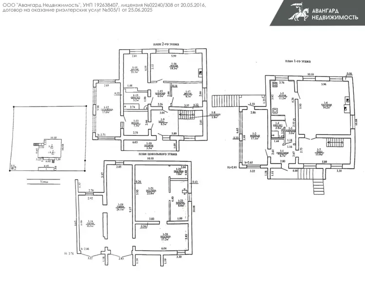Цокольный этаж - два гаража с отдельными воротами (один длиной 9,17м, в него можно ставить две средние машины), много технических и подсобных помещений, топочная.