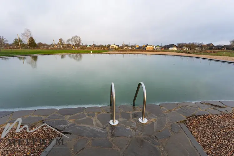 На участке расположен гостевой дом с баней, включающий просторную гостиную и кухонную зону, с отдельной системой канализации. Также имеется бассейн, закрытая территория, парковка на несколько автомобилей.