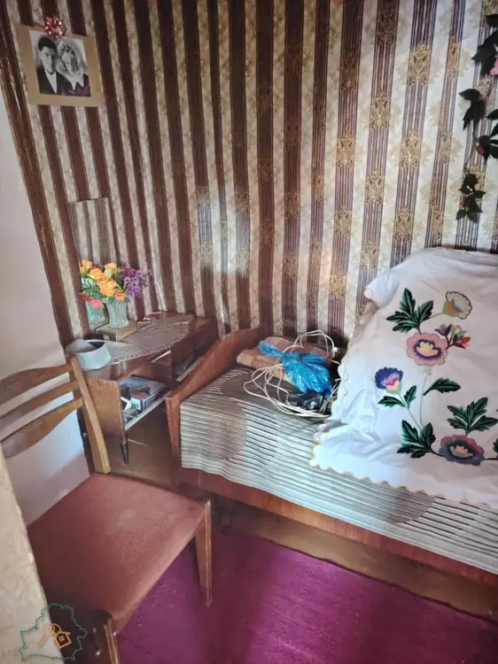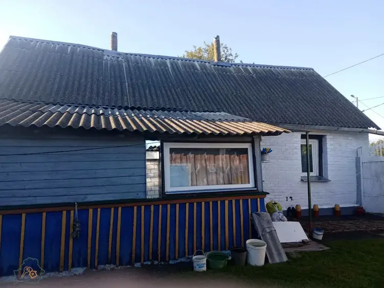 Дом бревенчатый частично кирпич, пристройка бревенчатая, сени, два сарая, погреб, гараж, крыша шифер. Общая площадь дома 41,4 кв.м, жилая 26,33, кухня 15,07. Три жилые комнаты, туалет во дворе. Окна все ПВХ.