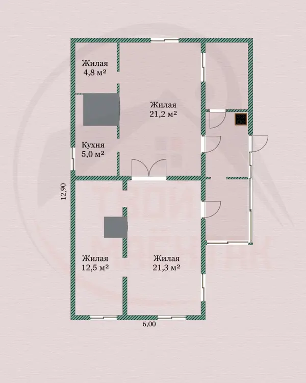 Свет в доме, есть печка на кухне и печка с лежанкой в комнате, колодец в метре от дома, в 15 метрах колонка.