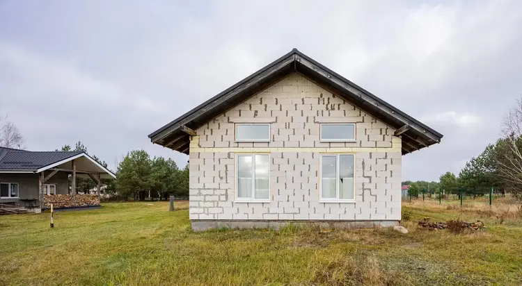 Наружные и внутренние стены дома без отделки. Высота подкровельного пространства позволяет обустройство второго этажа.
