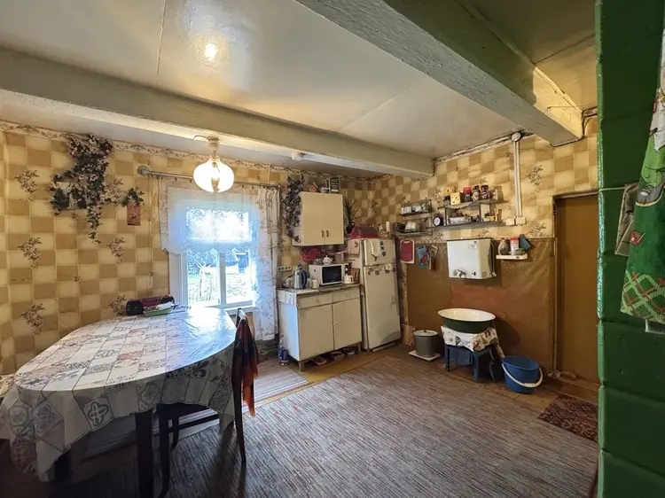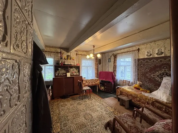 Характеристика строения, коммуникации:Дом добротный: хороший высокий фундамент бутовый, крепкий пол, кровля - шифер, отопление - русская печь и грубка, действующие.