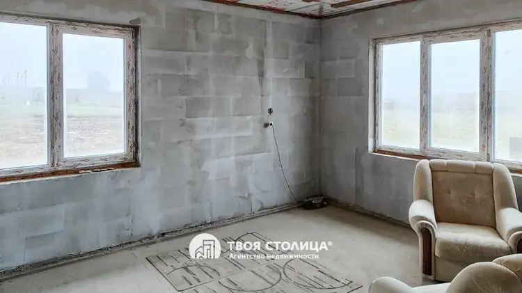 Продается современный коттедж в Василевщине – ваш новый дом мечты!Идеальное предложение для тех, кто ищет комфорт и уединение всего в 9 км от МКАД по престижному Брестскому направлению. Это идеальное место для постоянного проживания или загородного отдыха, сочетающее тишину природы и быструю доступность к столице.Площадь составляет 145 кв.м, что обеспечивает достаточно пространства для вашей семьи. Дом 2022 года постройки, выполнен из высококачественного газосиликатного блока, что гарантирует прочность, отличную теплоизоляцию и долговечность. Надежная крыша из ондулина обеспечит защиту на многие годы.В коттедже предусмотрены 2 изолированные комнаты, большая кухня-гостиная с выходом на террасу, удобный санузел и подсобное помещение, которые вы сможете обустроить по своему вкусу, создав уютное гнездышко.Установлены стеклопакеты ПВХ. Внутри дома черновая отделка: стены оштукатурены, бетонная стяжка пола, закладные под коммуникации.В доме 3 входа: основной, запасной со стороны подсобного помещения и выход из гостиной на террасу во внутренний двор.Из коммуникаций: подключено трехфазное электричество 380В, обеспечивающее все современные потребности, из них на отопление выделено 20 кВт. Оптоволокно в доме. Водопровод заведен в дом по проектной документации, но не подключен. Газ проходит рядом с участком, что значительно упрощает и удешевляет его подключение в будущем. Обратите внимание, что отопление на данный момент отсутствует – это дает вам полную свободу в выборе и установке систем по вашим предпочтениям и бюджету, позволяя создать дом полностью под себя.Просторный участок площадью 11.76 соток позволит воплотить любые ландшафтные идеи: создать плодоносящий сад, разбить огород или обустроить живописную зону отдыха для всей семьи и друзей. Подъездные пути к участку асфальтированы.По улице современные коттеджи с приветливыми хозяевами.Сообщение с Минском - автобусы и маршрутки. До остановки 10 минут пешком.Не упустите уникальный шанс приобрести новый, просторный коттедж в Василевщине, который сочетает в себе преимущества загородной жизни и близость к Минску. Это отличная инвестиция в ваше будущее и комфорт вашей семьи. Звоните прямо сейчас, чтобы узнать больше и договориться о просмотре! ООО "Твоя столица", УНП 101136973, лицензия №02240/15 от 17.02.05г.