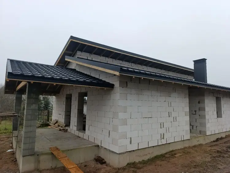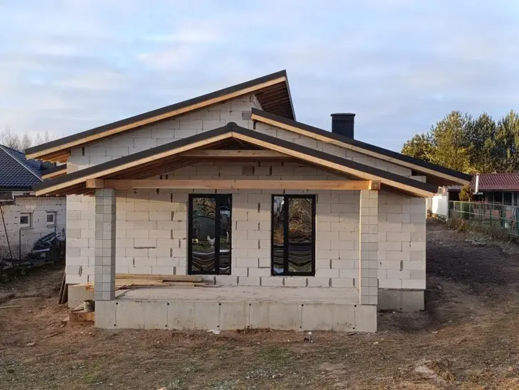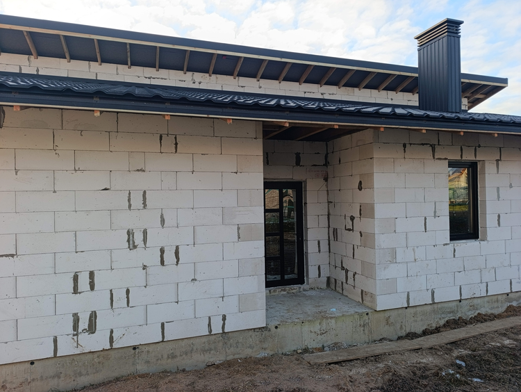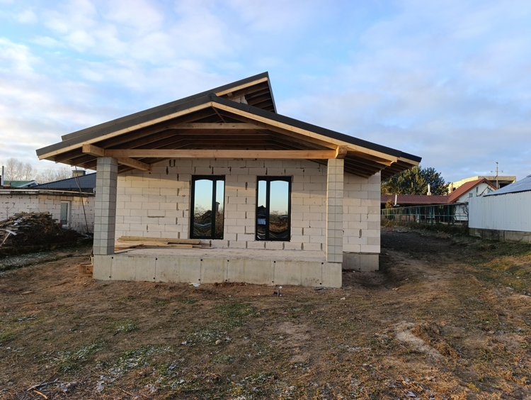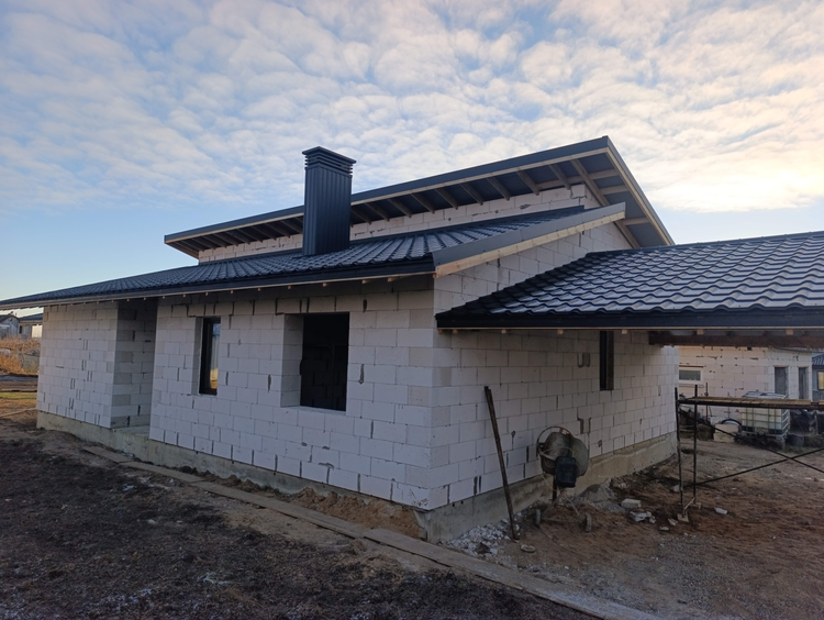 • Материал стен — газобетонные блоки (надёжно, тепло, долговечно)