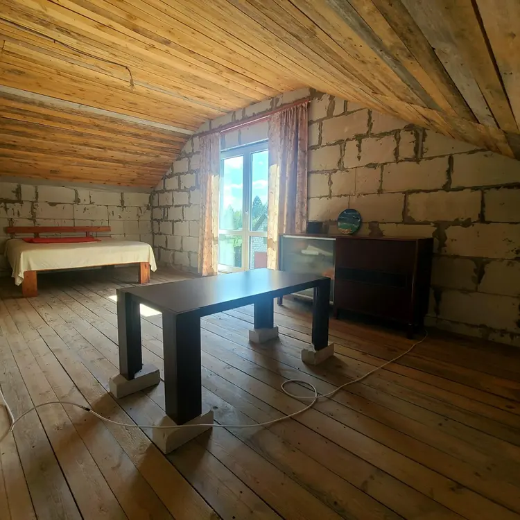 -Дом двухэтажный, в котором выделено 5 жилых комнат, кухня более 9,5 кв. м и два раздельных санузла. По всему дому уложены черновые деревянные полы. В гостиной обустроен дымоход под камин. По всему дому требуется дальнейший ремонт под ваш вкус, чем очень выгодно, так как основные работы уже сделаны.