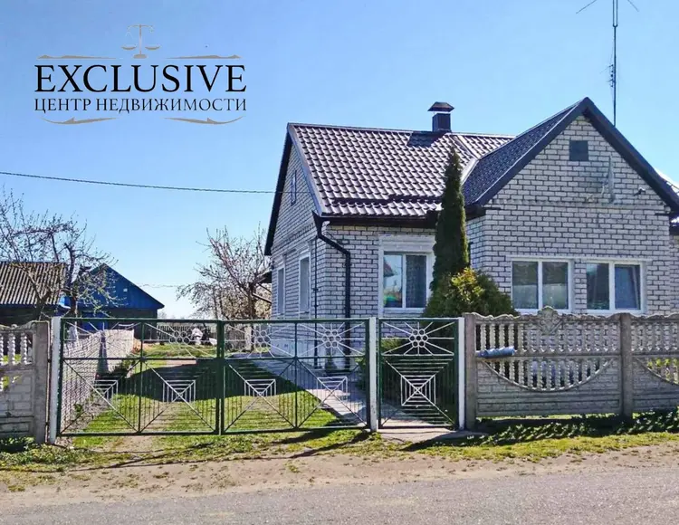 Дом в большой деревне, недалеко г.Столбцы. Дом из бревна, обложенного кирпичом, всего в доме 4 раздельных комнаты, кухня, ванная, туалет, топочная, есть веранда, общая площадь дома - 80,7 квадратных метра, два входа в дом, входные двери металлические.