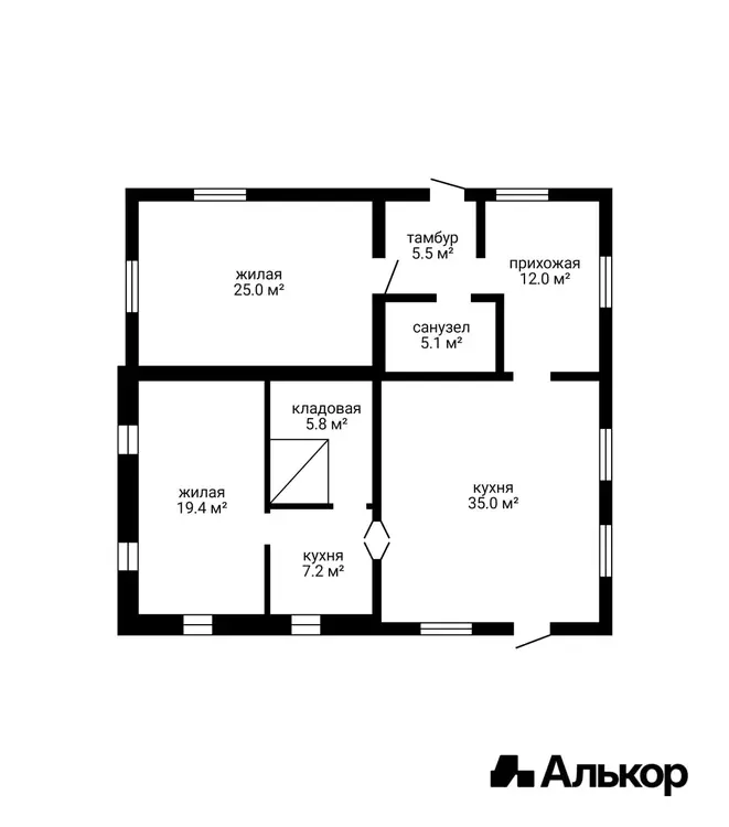 - Общая площадь: 115м2