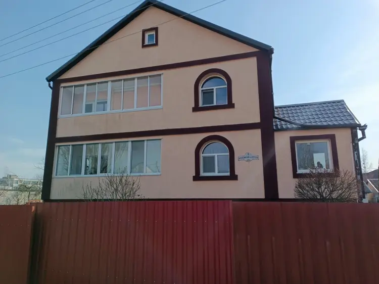 Продается большой двухэтажный дом в д. Заполье, ул. Космонавтов. Отличное расположение дома в черте города! Год постройки - 2000. Участок правильной прямоугольной формы с ограждением по всему периметру (металлопрофиль + сетка - рабица). Двое ворот для заезда. Площадь участка 0,1805 га + доп. участок, прилегающий к данному, площадью 0,0349 га. Дом пеноблочный, облицован кирпичом, оштукатурен. Есть цокольный этаж: гараж 41,5 м², комната отдыха (бильярдная) - 44,7 м². На полу плитка. Котельная. Общая площадь дома 190 м², жилая 99,6 м², кухня 18,6 м², 4 жилые комнаты. Крыша - металлочерепица, окна ПВХ, две лоджии, застеклены. Входная дверь – металлическая + ПВХ, межкомнатные двери и лестница - массив сосны под лак. Пол - деревянная доска, окрашенная под лак. На стенах обои, потолок натяжной и снежка. Два санузла - плитка (на каждом этаже). Вода - центральная, канализация местная, идёт процесс подключения к центральной. Отопление - газовый котёл "Viessmann", твердотопливный котёл, печь. Частично остаётся мебель. На участке есть декоративные зелёные насаждения, плодовый сад, 2 теплички, беседка, качели. Развитая инфраструктура: рядом д/с, школа № 10, Храм Петра и Февронии, магазины.