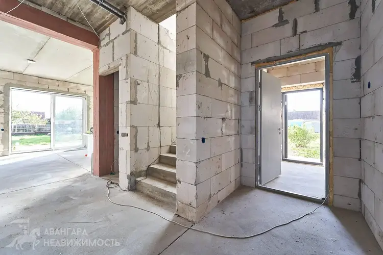 Стены из газосиликатных блоков, стоит на ленточном фундаменте с металлической фиброй, данный фундамент отличается прочностью и долговечностью. Глубина заложения – 1.7 м.