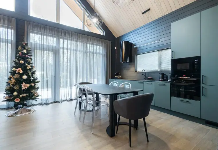· Кухня - гостиная (общей площадью - 35,24м2) с кухонной мебелью и обеденной группой, оснащена современной встроенной техникой Bosh: Индукционная плита (4 отд.), Духовой шкаф, Вытяжка, Посудомоечная машина, Холодильник-морозильник, Микроволновая печь; а также есть Кофемашина, ТV, Электро – камин, Кондиционирование, Мягкая мебель