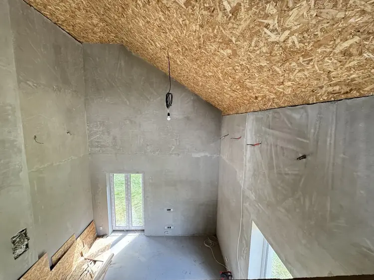 На первом этаже, предполагается гостиная с кухонным оборудованием, спальня, ванная комната с санузлом; имеется два выхода на террасу из кухни/гостиной, стены – блок 40 см, высота потолков 3 м2, дом утеплен, оштукатурен, окна ПВХ 4-х камерные пр-во РП, кровля фальцевая, вода-колодец на 8 колец, газ-центральный, в доме установлены радиаторы, теплые полы, установлен газовый котел DE Dietrich, бойлер, фильтры и т.п., все строительные материалы, система отопления и т.п. премиум класса, строили качественно для себя, световое решение выполнено по дизайн проекту, все продумано до мелочей, высокие потолки и большие панорамные окна обеспечивают полноту естественного освещения и простор, обустроен камин. Имеется большой гараж с секционными воротами, которые создают оптимальные условия для шумо- и теплоизоляции помещения. На 1/4 дома второй свет, что означает отсутствие потолочного перекрытия части гостиной, что создает высокое и просторное помещение, наполненное светом.