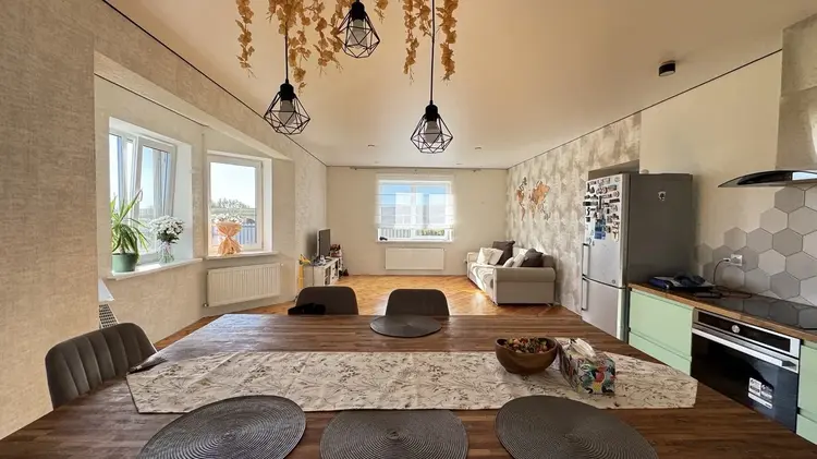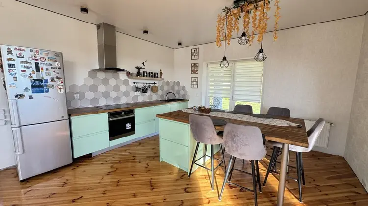 Предлагаем вашему вниманию идеальное место для жизни и отдыха в 8 км от города Гродно в деревне Жукевичи. Просторный жилой дом, полностью готов к проживанию S- 200 м2. На первом этаже расположен холл 12,3 м2, с/у, кухня/гостиная 35 м2 с выходом на террасу 33 м2, жилая комната 12,3 м2; мансарда включает в себя: две детские комнаты 12 и 18,8 м2, а так же спальню 18,2 м2, спальня и детская имеет выход на балкон, ванная комната 11,5 м2 так же с выходом на балкон.