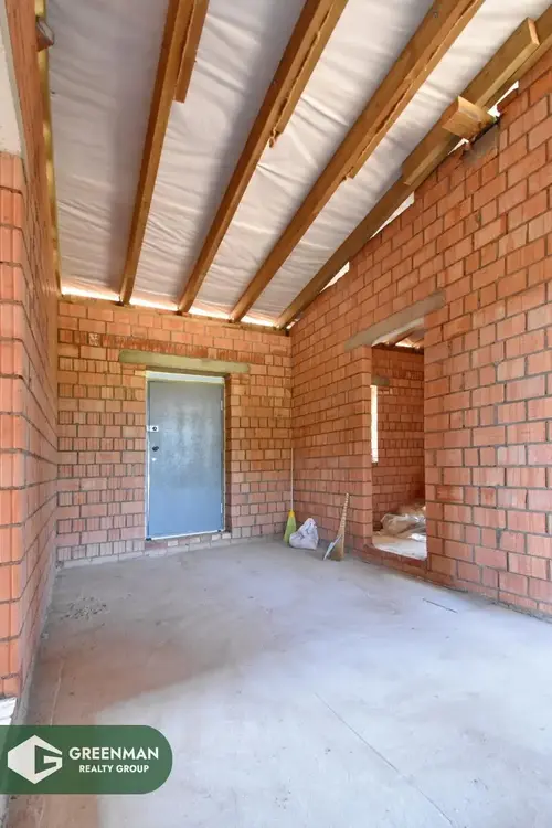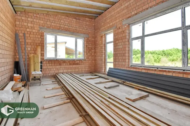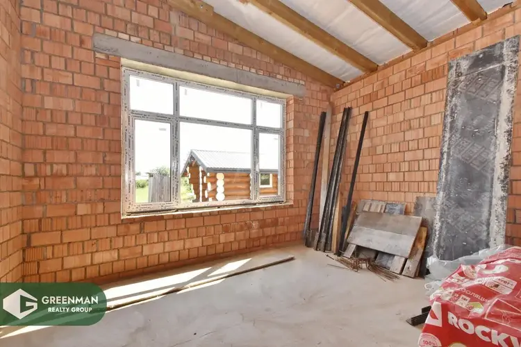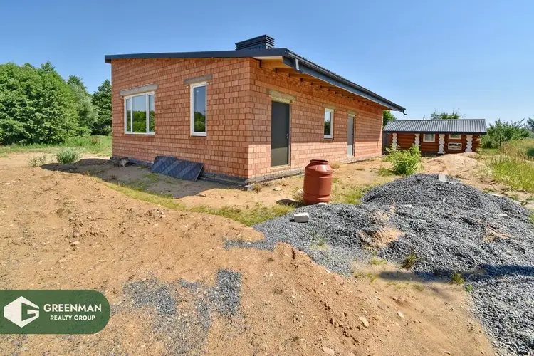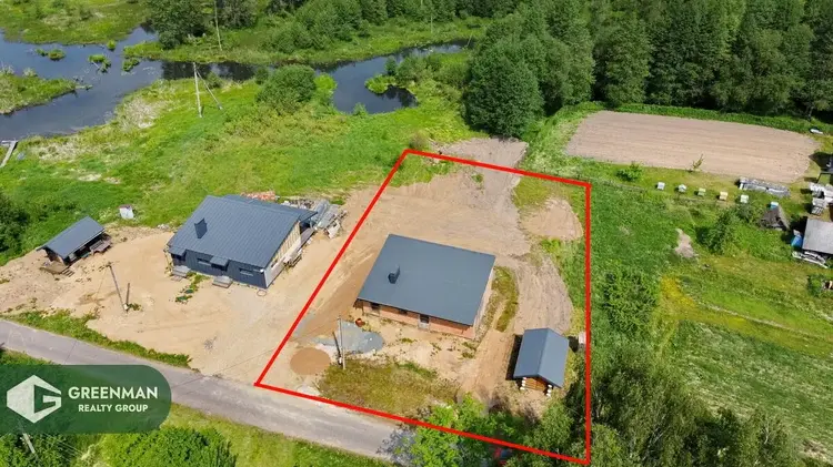 На участке расположен кирпичный дом (40% готовности), крыша-металлочерепица, есть электричество и гостевой домик из бревна.