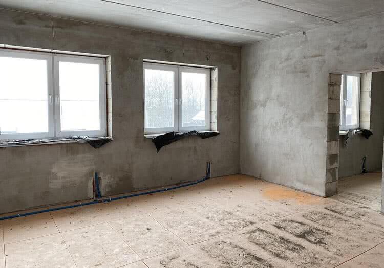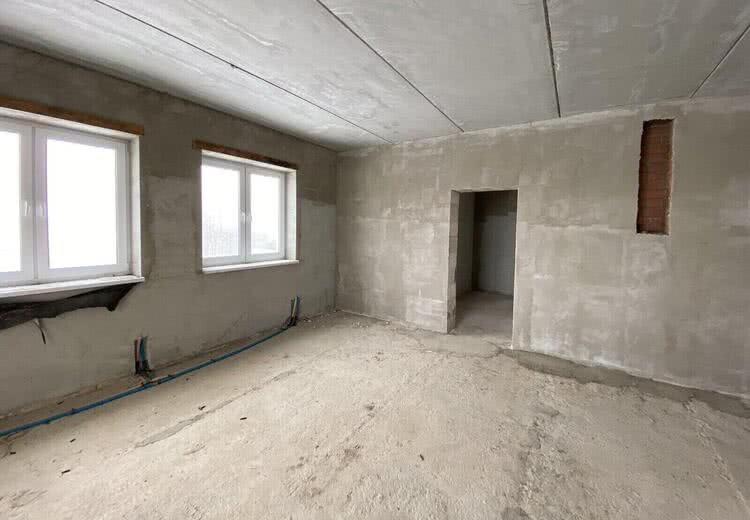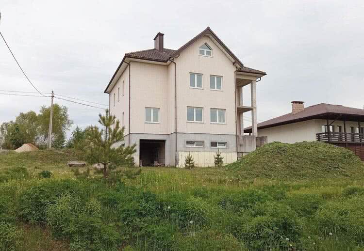 2-х уровневый коттедж. Площадь 410 м2. Крыша черепично-песчаная черепица. Дом отштукатурен. Установлены окна ПВХ.