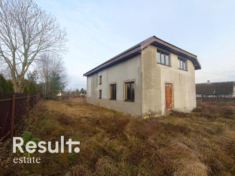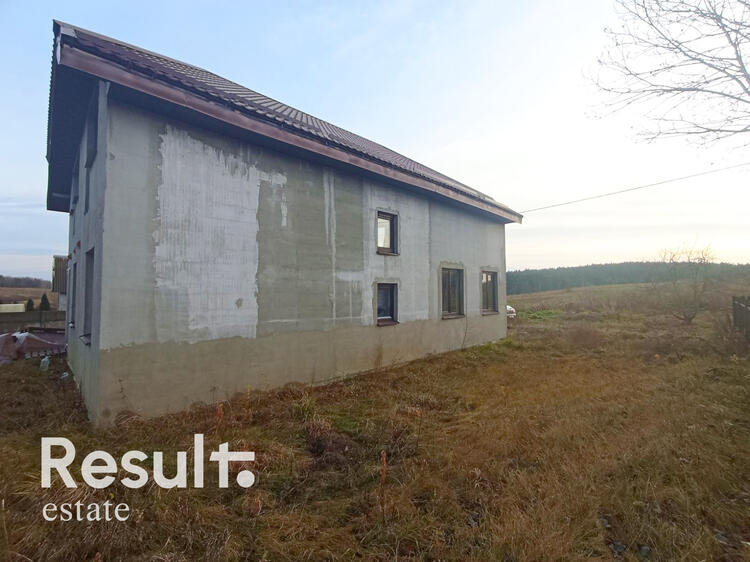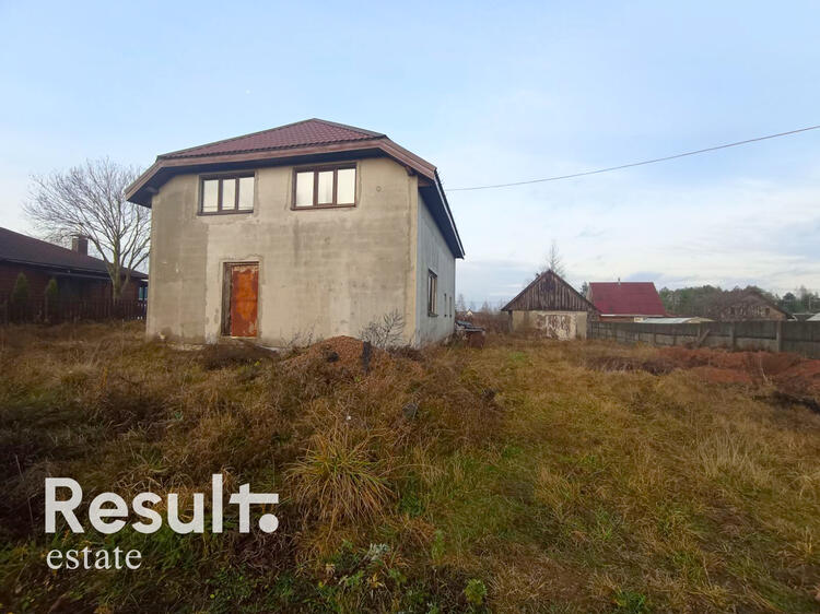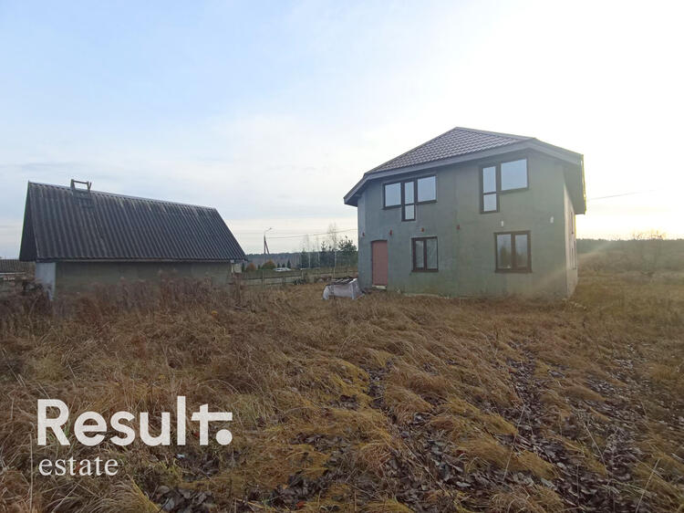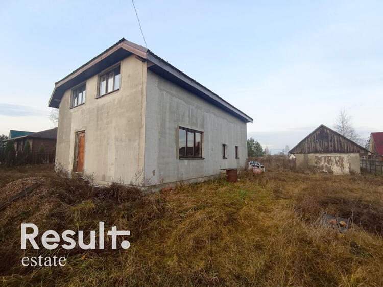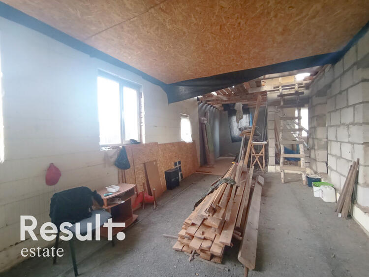 На участке располагаются два строения - гараж 5x8 м, без ямы, и дом 70% готовности, периметр застройки: 12.5х8.8 м, площадь застройки 110 кв.м.