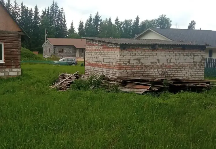 Участок правильной формы 14,66 сот., за ним сразу лес. На участке хозпостройка из кирпича и двух небольших помещений - планировали баню.