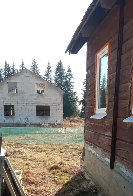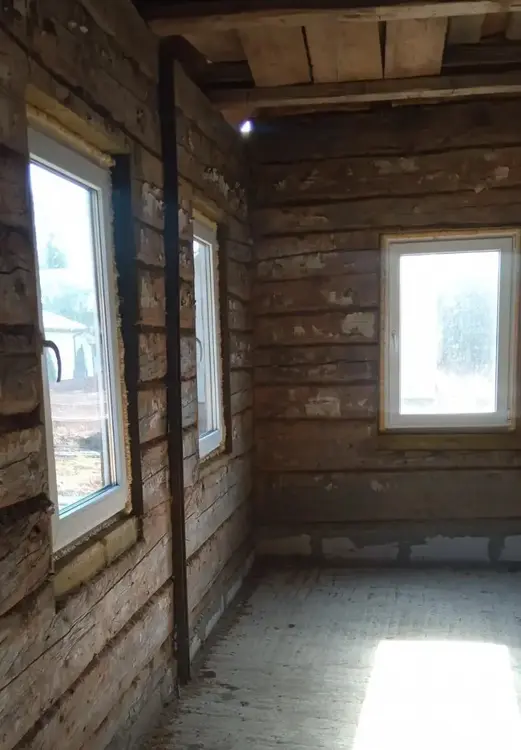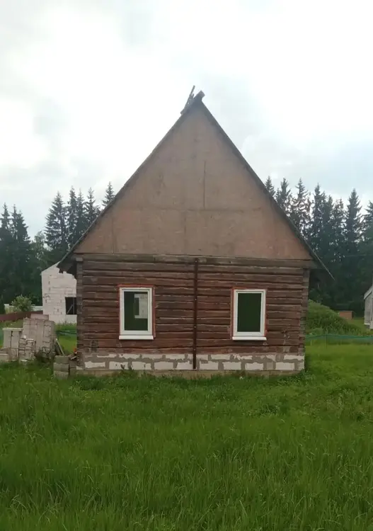 Продам дом из бревен диаметром более 40см, построенный на монолитном фундаменте. Выполнена стяжка пола. Вставлены евроокна и двери. Договор на электроснабжение предусматривает возможность электрообогрева. Газ, водопровод, канализация проходят по улице.