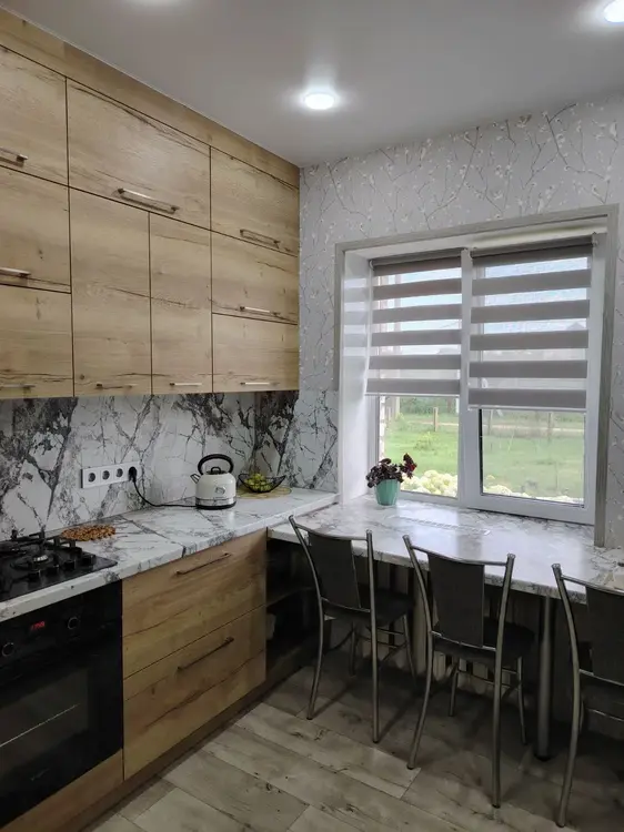 - уютная кухня с большим окном и красивым видом из окна площадью более 13 м;