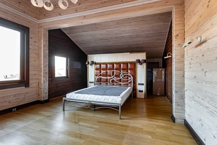 - Стены: вручную отшлифованы и покрыты маслом OSMO (Германия) для сохранения природной текстуры дерева.