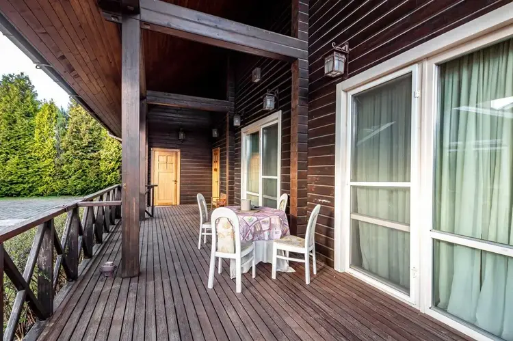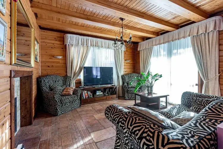 - Стены: вручную отшлифованы и покрыты маслом OSMO (Германия) для сохранения природной текстуры дерева.
