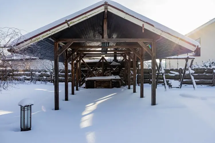 На территории обустроенная зона барбекю с мраморной столешницей и водоснабжением.